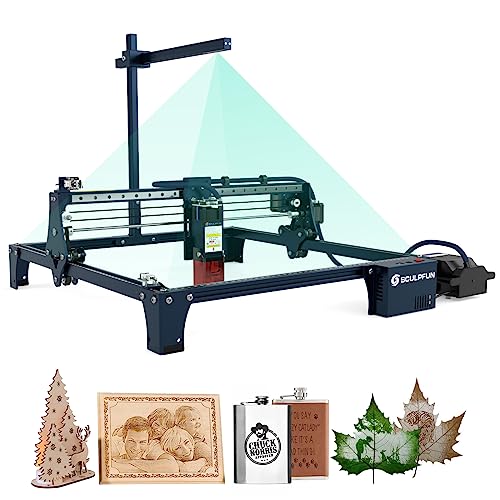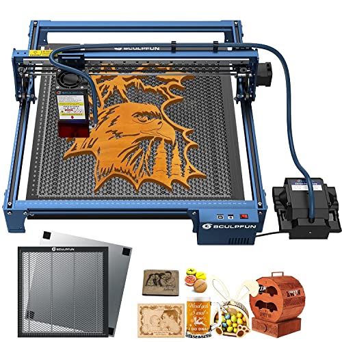 SCULPFUN S9 Laser gravyrmaskin med Air Assist, B1 Enclosure, Honeycomb arbetsbord, 90 W effekt gravering skärning för trä gör-det-själv hus dekoration presenter, exakt fokus, 410 x 420 mm