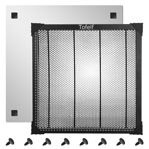 Tofelf Honeycomb bikakebord för laser gravyrmaskin, 500 x 500 x 22 mm (19,68 x 19,68 tum x 0,86 tum), bikakelaser bänkskiva, bordsskydd med aluminiumplatta, kompatibel med olika gravyrmaskiner