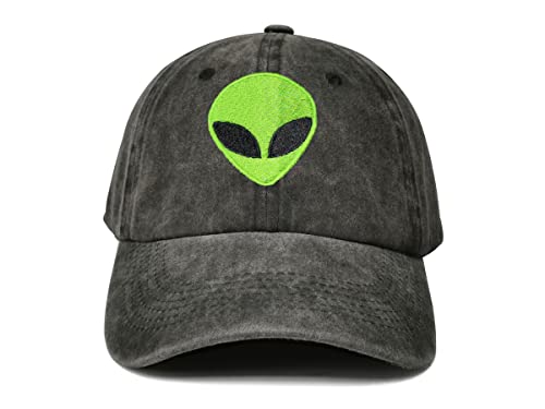 Hepandy Green Alien Hat, Embroidered Baseball Cap, Gifts for Women Men, Washed Black Embroidery Hat, Adjustable Snapback Dad Hats
