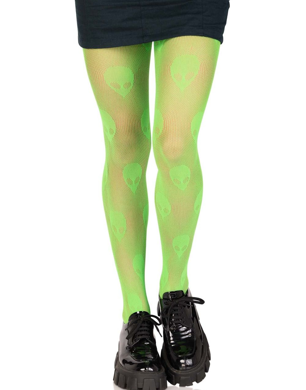 Neon Gröna Strumpbyxor med Alien-Mönster