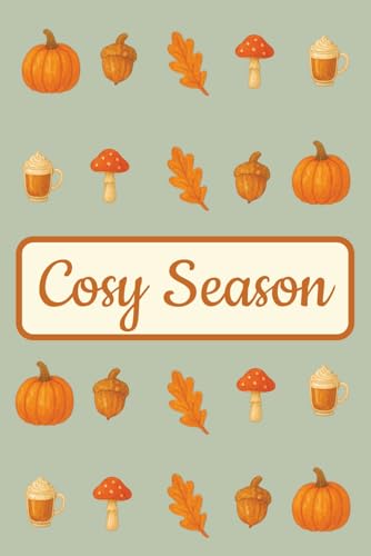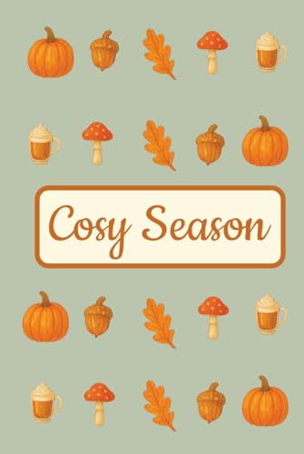 Green Cosy Season Journal: Autumn, Autumnal, Autumn decor, Pumpkin, Pumpkin spice latte, Toadstool, Leaves, Olive green, Pretty, Cute, Coffee table ... Wide ruled, 100 pages, Hardback, 6X9 Inches