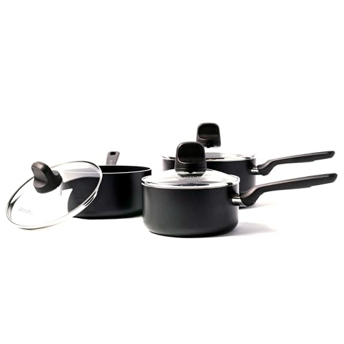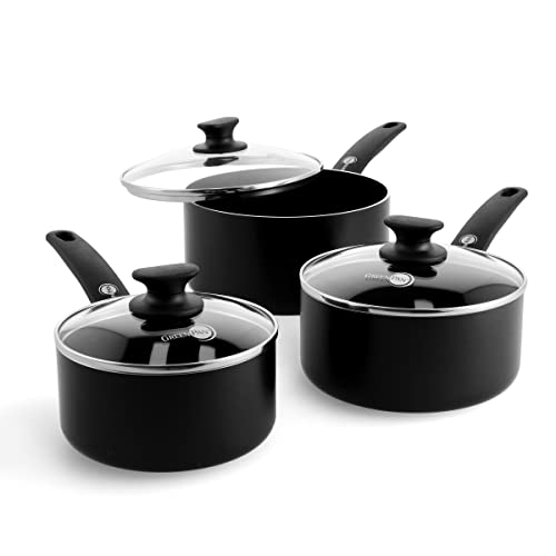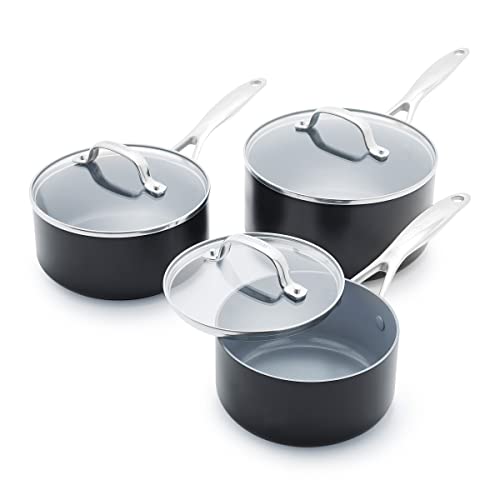 GreenPan Memphis 3-delad non-stick kastrull set med lock 16/18/20 cm, 100% hälsosam keramik, metallredskap/induktion/diskmaskin/ugnssäker, svart