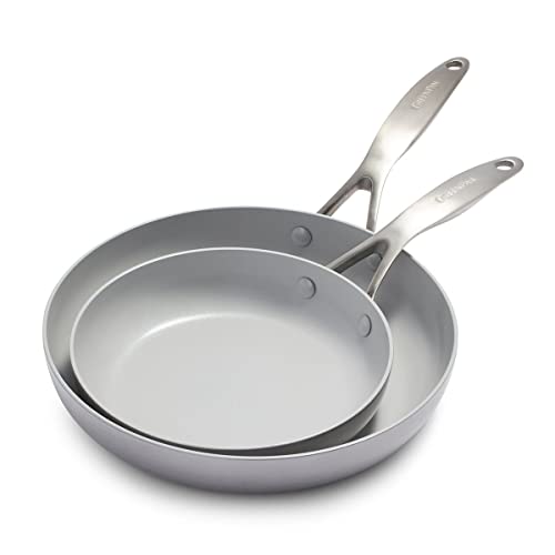 GreenPan Venice Pro Tri-Ply rostfritt stål hälsosam keramisk non-stick 20 cm och 26 cm stekpanna stekpanna, Pfann-fri, multipläterad, induktion, ugnssäker, silver