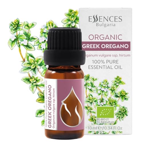 Essences Bulgaria Ekologisk Grekisk Oregano Eterisk Olja 10ml | Origanum Vulgare ssp. Hirtum | 100% Ren och Naturlig | Outspädd | Terapeutisk betyg | Familjeägd gård | Ångdestillerad | Icke-GMO