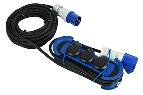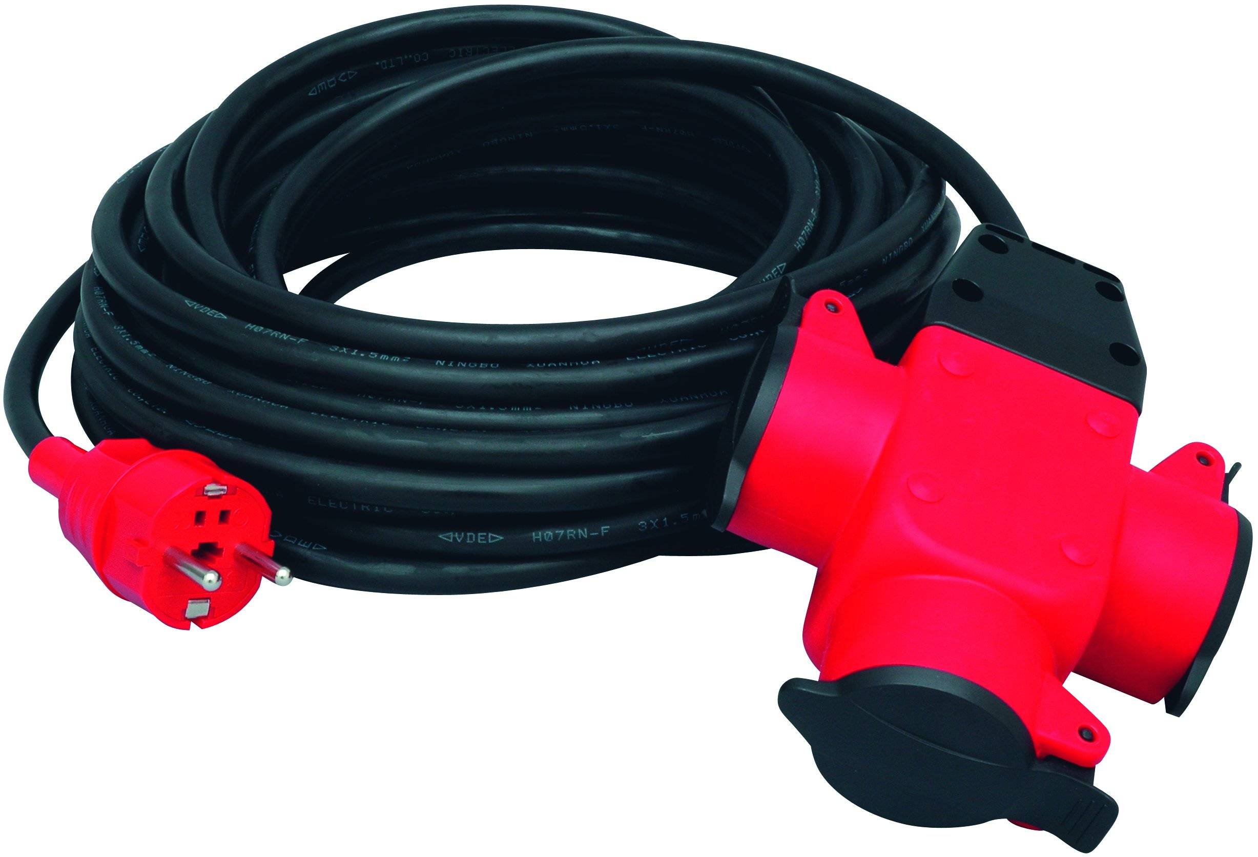 Electraline 62575 professionell grenuttag / förlängning för utomhusbruk, CEE-kontakt, CEE-uttag + 3 Schuko-uttag, 10 m (8+2) gummikabel H07RN-F 3G1.5, lämplig för camping