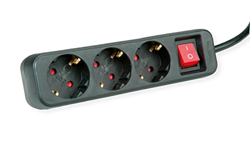 ROLINE 3-vägs grenuttag med strömbrytare, svart, 10 m