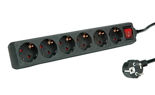 ROLINE 6-vägs grenuttag med strömbrytare, svart, 10 m