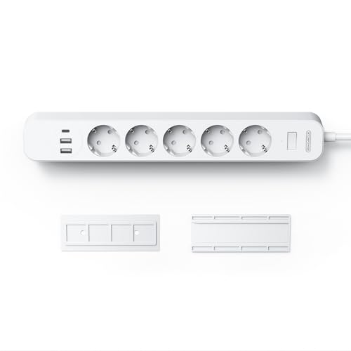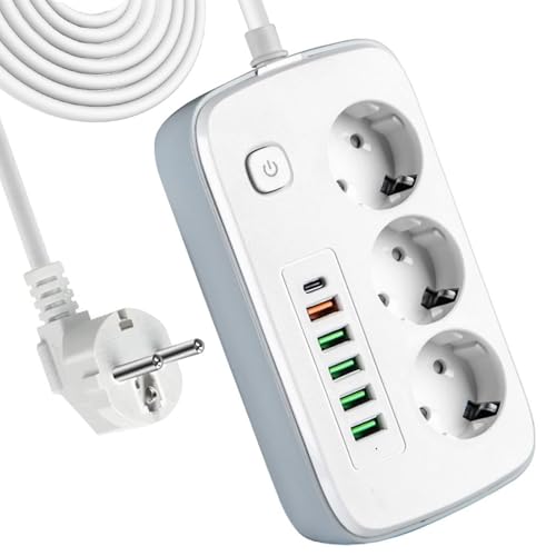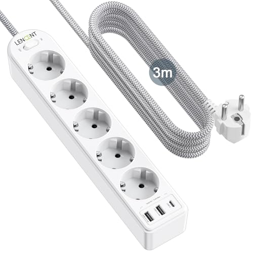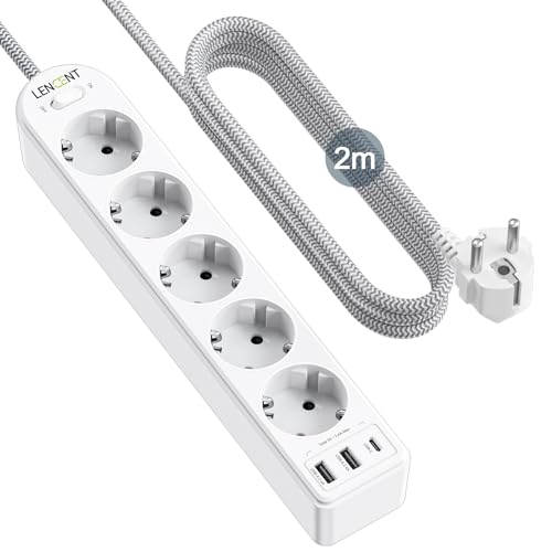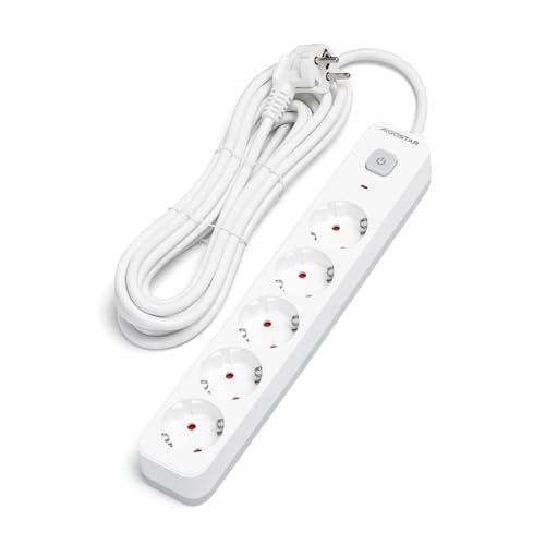 Lanberg Grenuttak 5-uttak med strømbryter 3 Meter Hvit