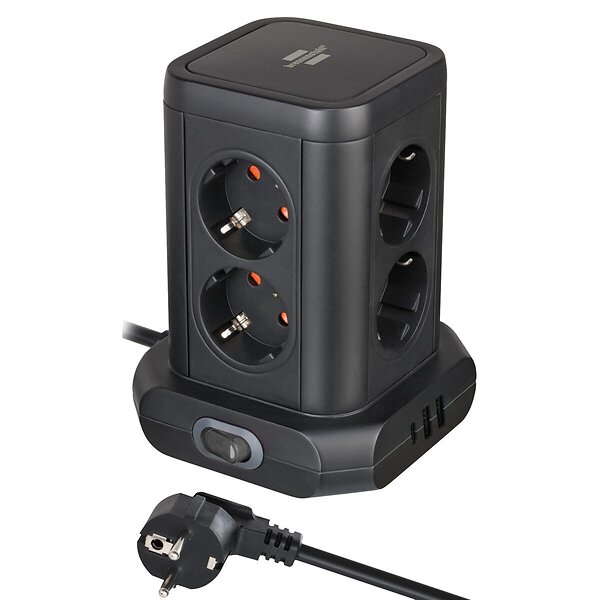 Brennenstuhl Socket Tower 8-vägs grenuttag med 4 USB