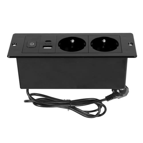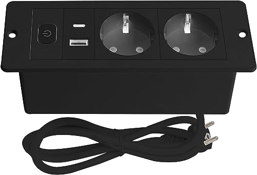 Btstil Bordsskiva försänkt uttag, 2-vägs bordsuttag med USB och typ-C, 1,8 m kabel, grenuttag, infälld bänkskiva för kontor, kök, bänkskiva (2 AC-svart)