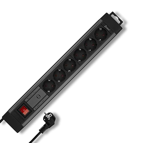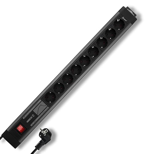 10-vägs grenuttag med överspänningsskydd, barnsäkring och strömbrytare, för väggmontering på kontor, industri, med 1,8 m lång kabel, 16 A/3 680 W