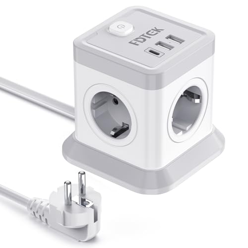 FDTEK uttagskub med USB flera uttag kub grenuttag med strömbrytare (2 500 W/10 A) 4-vägs uttag med 1,8 m kabel flera kontakter för kontor hem och resor