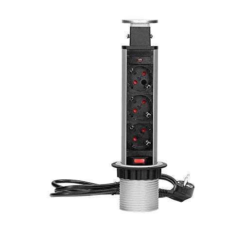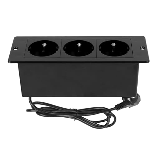 Bordsskiva sänkt uttag med 2 USB, infällbar installation grenuttag 3-vägs, bordsuttag med 1,8 m kabel, för kontor, sovrum, klassrum, arbetsplatser (svart, 3AC)