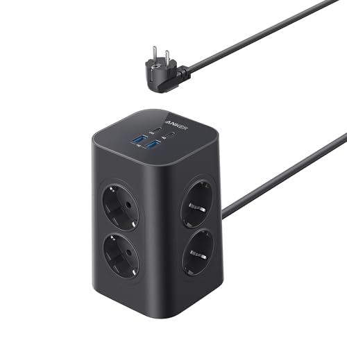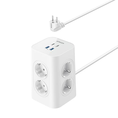Anker flera uttag, 8-vägs grenuttag, grenuttag med 4 USB, 20 W USB C snabbladdning, flera uttag med strömbrytare, 2 m kabel uttagstorn för kontor, hem, spel