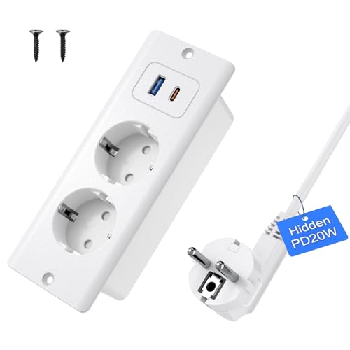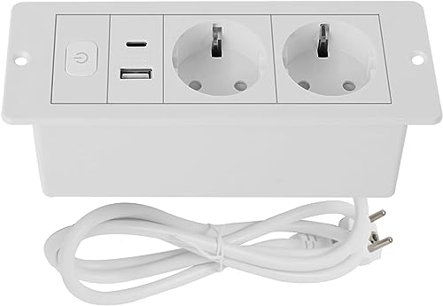 Inbyggt uttag med USB C 20 W, 2-vägs bordsuttag med USB A och Type-C, 4-i-1 bordsskiva försänkt trippeluttag med 1,8 m förlängningskabel, installation grenuttag för kontor, hemma (vit)