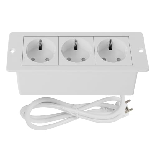 Bordsskiva försänkt uttag med 2 USB, infällbar installation grenuttag 3-vägs, bordsuttag med 1,8 m kabel, för kontor, sovrum, klassrum, arbetsplatser (vit, 3AC)