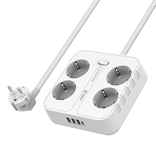 UNIDAPT 8-i-1 förlängningskabel, 4-vägs grenuttag med 3 USB och 1 USB-C, överspänningsskydd med flera uttag, flerkontakt för uttag, grenuttag med strömbrytare och barnsäkerhetsslutare 1,8m, vit