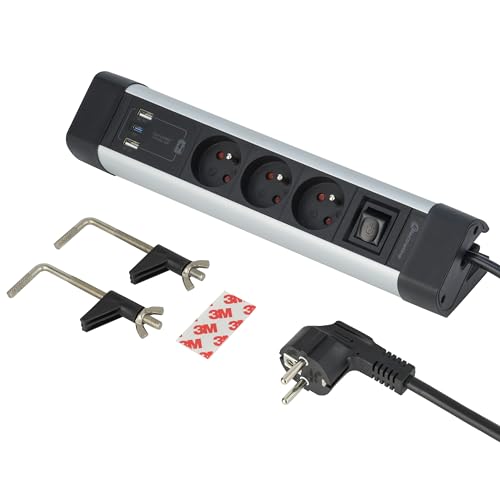 MC POWER grenuttag underbyggda uttag | stil | 2-vägs uttag 2 x USB-A, 15 cm kabel, 230 V ~/16 A, hörnuttag kontor skrivbord kök, antracit matt