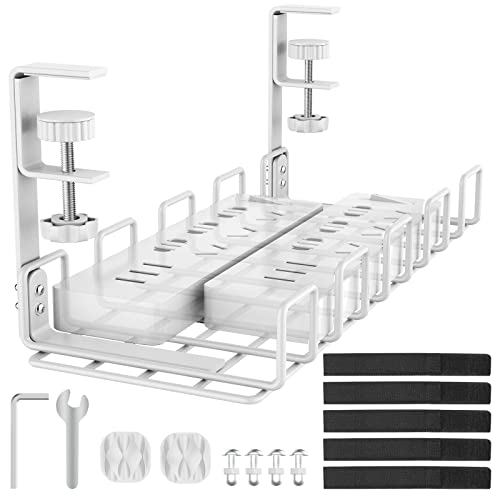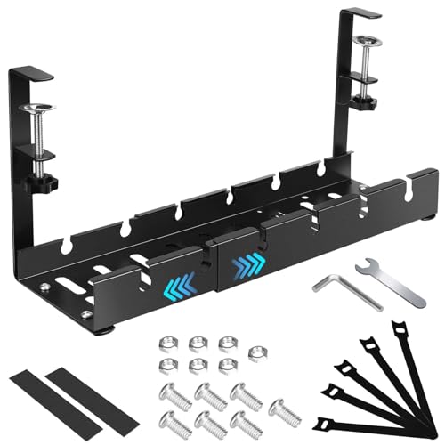 Miiepls Kabelkanal skrivbord, kabelhantering skrivbord utan borrning, infällbar 30,5-55 cm klämbar kabeldragning skrivbord, arrangör för att hantera kablar och grenuttag för kontor