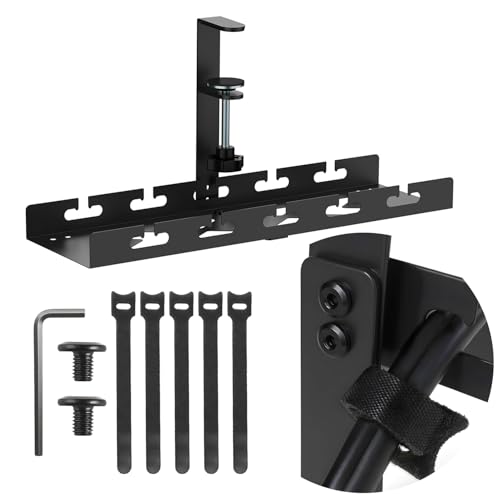 REFLYING Ingen borrning under skrivbord kabelhanteringsbricka, uppgraderad kabelbricka med klämma för skrivbord, robust metallkabelhantering racerbana för grenuttag, svart, 1-pack