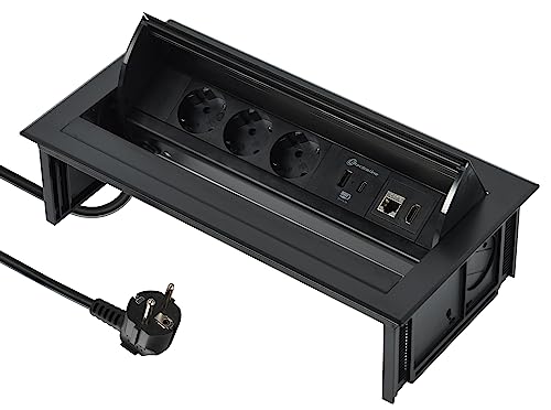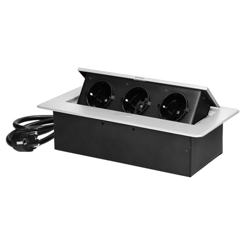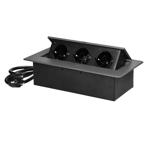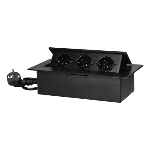 MIRATIC Bordsuttag Inbyggt Grenuttag Flera Uttag Skrivbord 3-vägs Schuko 1,5m Strömkabel 3680W Planfräst Kant Helbottenkonstruktion Olika Färger (svart)