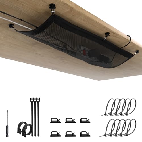 Flexibelt Kabelnät - Kabelhantering under skrivbordet svart - Kabelkanal skrivbord, kabelkorg för hantering av kablar och grenuttag - cable management under desk - Kabelorganisation under skrivbord
