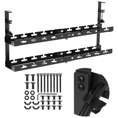 Maclean MC-104 B kabelkedja under skrivbord 2 nivåer 40 cm, svart robust klämfäste ABS-stål, belastning 5 kg, grenuttag organisatör med kabelgenomgångar och kardborreband ingår