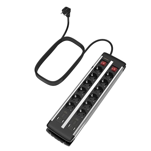 UCOMEN grenuttag 12-vägs med 2 USB C 4 USB A och överbelastningsskydd, 2 m förlängningskabel, dubbelströmbrytare, 12-vägs flera uttag för skrivbord, mötesrum, café, 16 A/3680 W