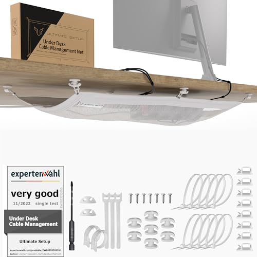 Kabelnät - Kabelhantering under skrivbordet vit - Kabelkanal skrivbord, kabelkorg för hantering av kablar och grenuttag - cable management under desk - Kabelorganisation under skrivbord