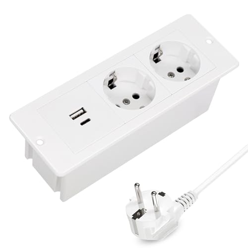 Idota Bordsuttag 2-vägs infällbart uttag med PD20 W snabbladdning installation grenuttag med 2 USB för kök kontor bordsskiva skrivbord (vit)