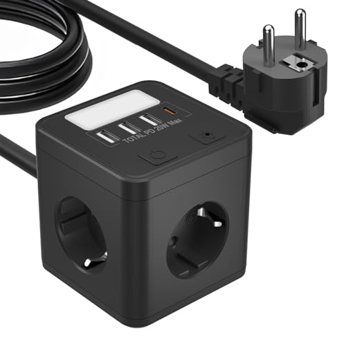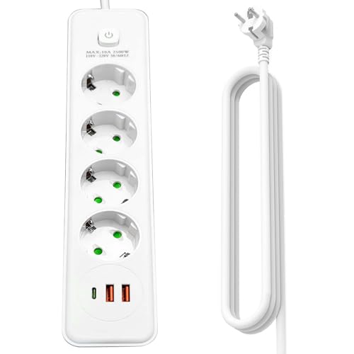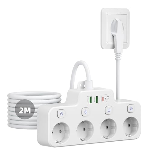 Sixiol 4-Way Individually Switched Power Strip with 4x USB-C and 2x USB-A 2m
