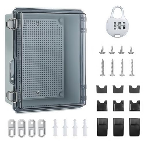 Vattentät kopplingsdosa IP65 ytmonterad fördelningsbox ABS kabelkopplingsdosa för att skydda grenuttag transparent kopplingsskåp utomhus med väggmonteringstillbehör och lås, 220 x 170 x 110 mm