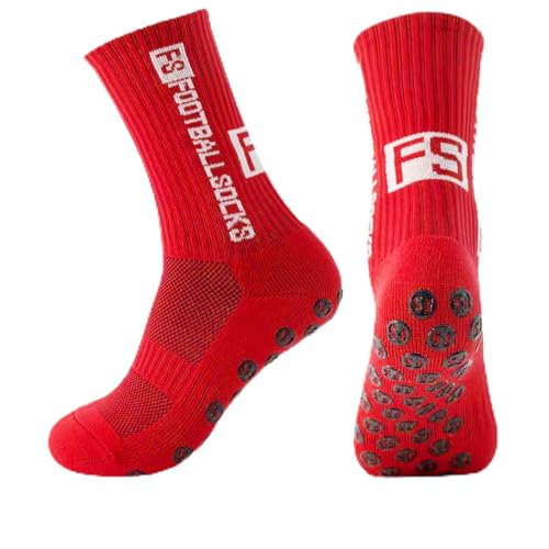 MPXEAVG 3 par strumpor fotboll, grepp strumpor fotboll, fotbollsstrumpor män kvinnor, halkfria sportstrumpor för fotboll basket löpning, röd, 38