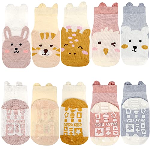 outfit spring Halkfria Strumpor Bebis, Strumpor Vinter Höst Flicka Pojke, Små Strumpor Bomull med grepp, Unisex Nyfödd Sport Djur Strumpor Set, Tjocklek N 5 Par, 3-5 år