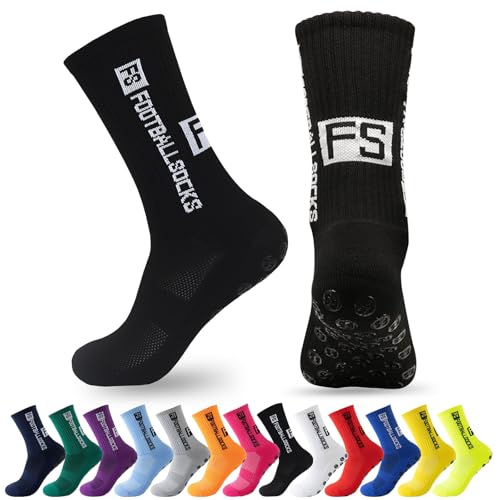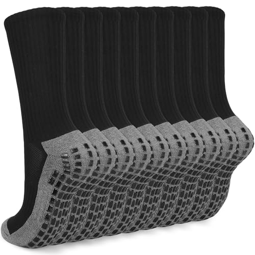 MPXEAVG 3 par strumpor fotboll, grepp strumpor fotboll, fotbollsstrumpor män kvinnor, halkfria sportstrumpor för fotboll basket löpning, svart, 38