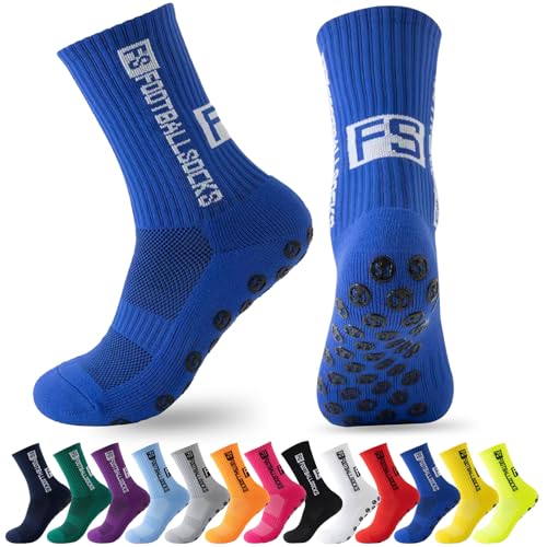 MPXEAVG 3 par strumpor fotboll, grepp strumpor fotboll, fotbollsstrumpor män kvinnor, halkfria sportstrumpor för fotboll basket löpning, blå, 38