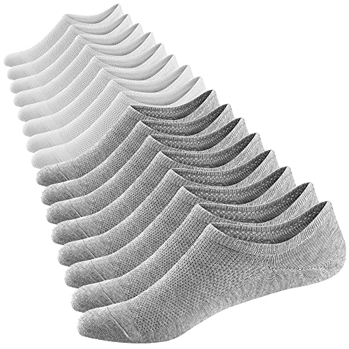 Ueither Herr No Show strumpor Ultra Low Cut Casual Strumpor Osynliga båtskofoder med halkfritt grepp, Stil B-4 Par Vit + 4 Par Grå, 43.5-47.5 EU