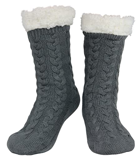 WYTartist Toffelstrumpor för män med grepp, supermjuka, varma, mysiga, luddiga, fleecefodrade, vinterstrumpor, strumpor för hemmet, Grå, en storlek