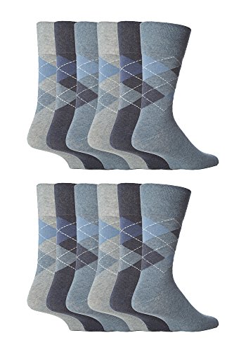 12 par mäns skonsamt grepp inga elastiska strumpor 6-11 UK, 39-45 EUR, enfärgade, Mgg21
