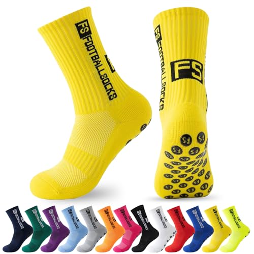 MPXEAVG 3 par strumpor fotboll, grepp strumpor fotboll, fotbollsstrumpor män kvinnor, halkfria sportstrumpor för fotboll basket löpning, GUL, 38