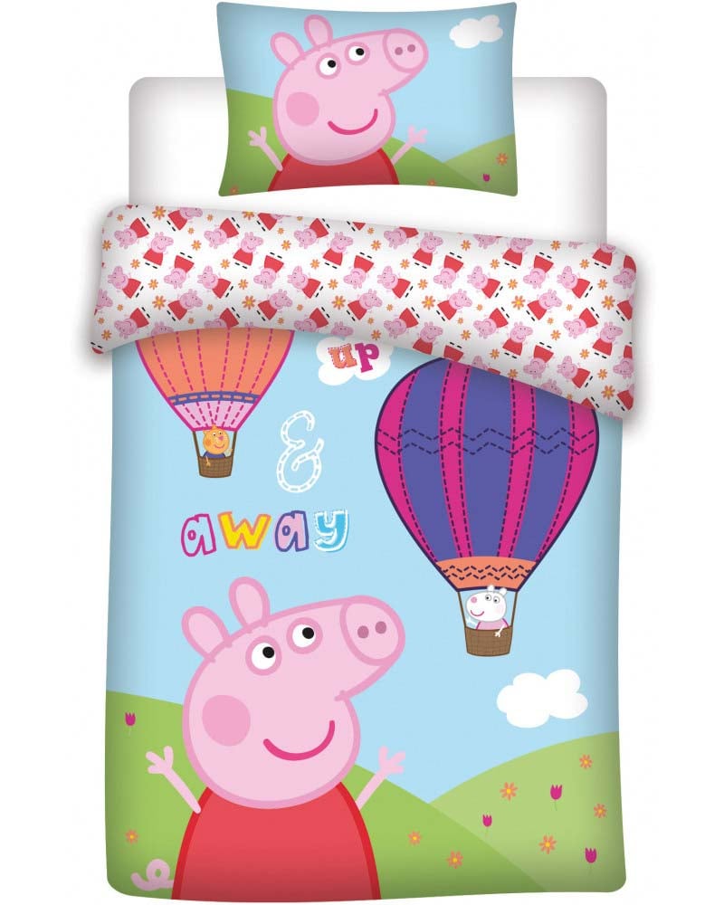 037 Greta gris sängkläder, peppa pig och luftballong, örngott, 2 stycken, 100 x 140 40 x 45 cm påslakan 100 % bomull OEKO-TEX