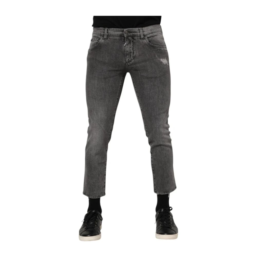 Dolce & Gabbana, Jeans , Herr, S, Denim, Logo Plaque Skinny Cropped Denim Jeans