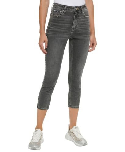 DKNY Dam hög midja cropped raka jeans, koncrete wash, 27, Concrete tvätt