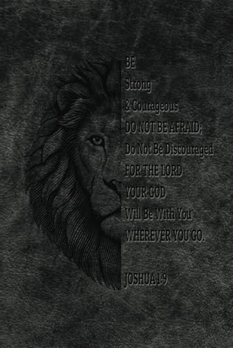 Be Strong and Courageous Lion Joshua 1:9 Bible Verse God Scripture Gray / Grey & Black Inspirational Hardback Notebook Journal, Wide Lined 200 Pages: Size 6.14x9.21 (15.6x23.3cm)