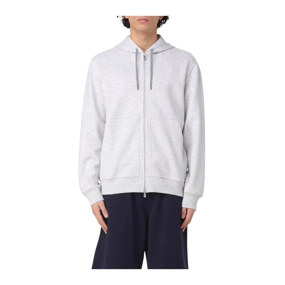 Brunello Cucinelli, Sweatshirts & Hoodies , Herr, S, Grå Zip-Up Hoodie Sweatshirt