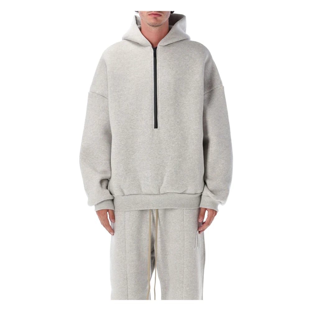 Fear Of God, Sweatshirts & Hoodies , Herr, M, Bomull, Grå Stickat Half-Zip Hoodie Aw25