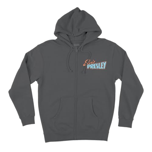 Elvis Presley Unisex-Adult Standard Official Merch Grey Photo Back Zip Hoodie, Dark Heather