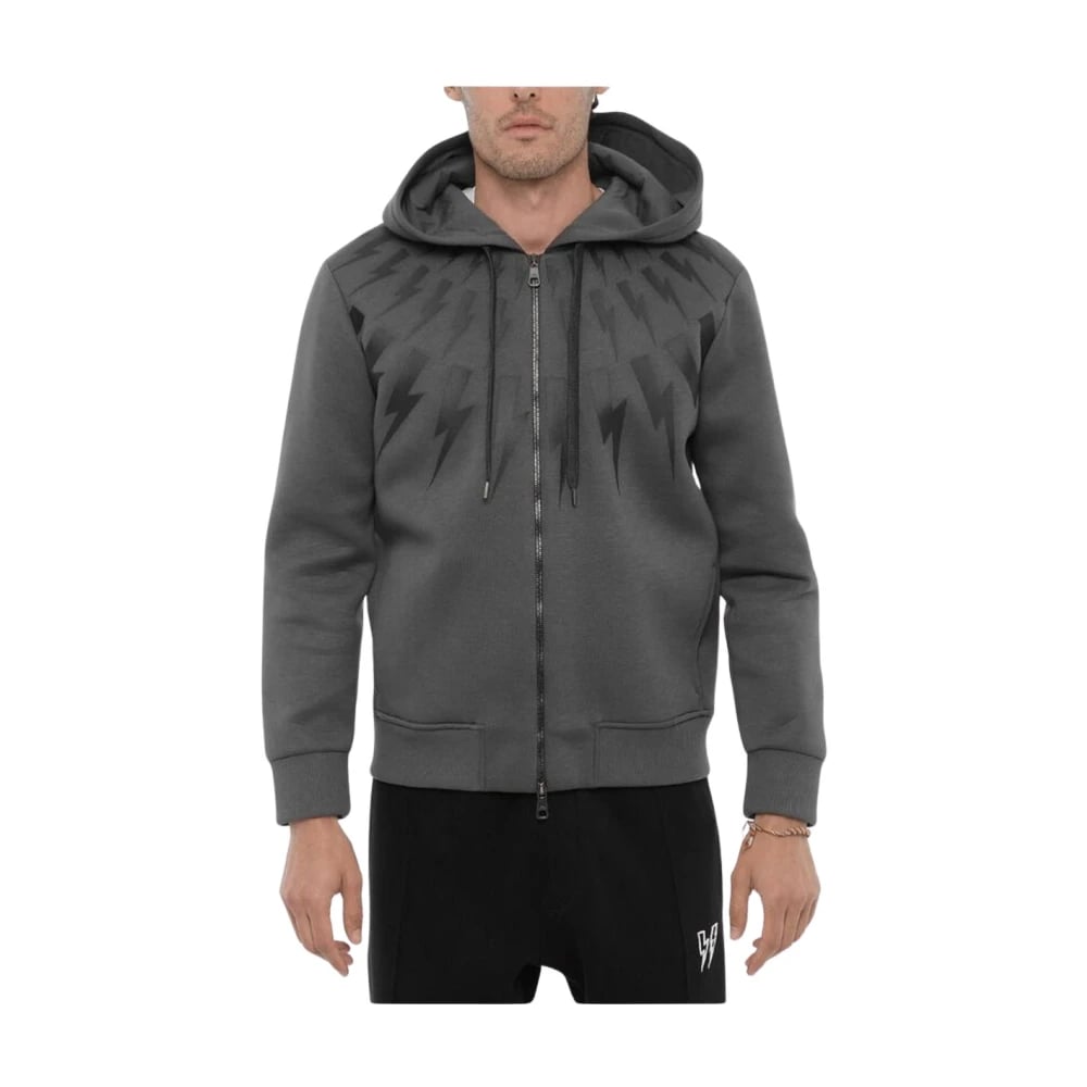 Neil Barrett, Sweatshirts & Hoodies , Herr, S, Grå ZipUp Hoodie för Män