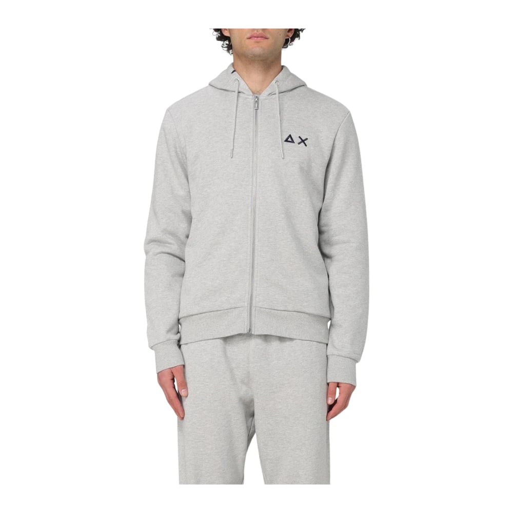 Sun68, Sweatshirts & Hoodies , Herr, M, Bomull, Grå Fleece Zip-Up Hoodie
