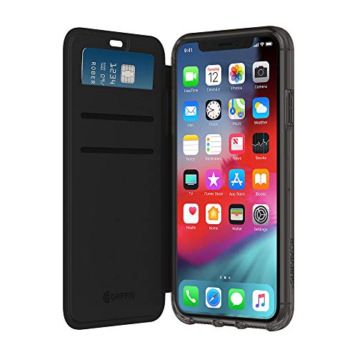 Griffin Survivor Clear plånboksfodral skyddsfodral enligt militärstandard Apple iPhone XS/X [reptålig beläggning, Qi kompatibel, kortfack, stötdämpande hörn] (svart/transparent) GIP-017-BKC